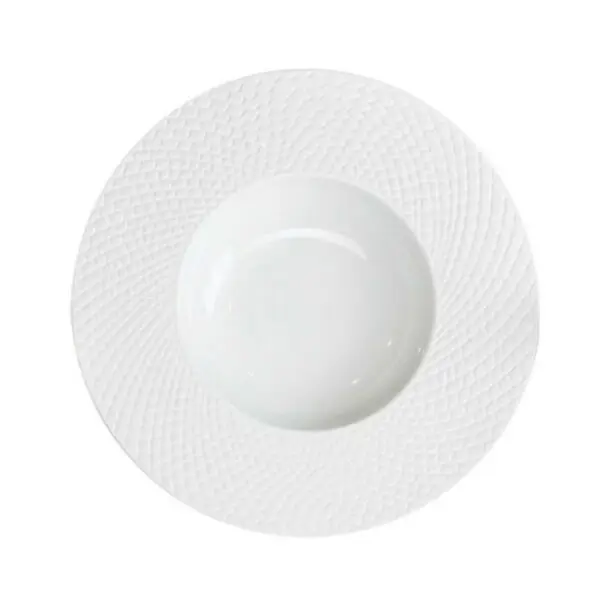 Assiette ronde creuse en porcelaine de diamètre 23 cm avec motif « Snake » sur l’aile de l’assiette.